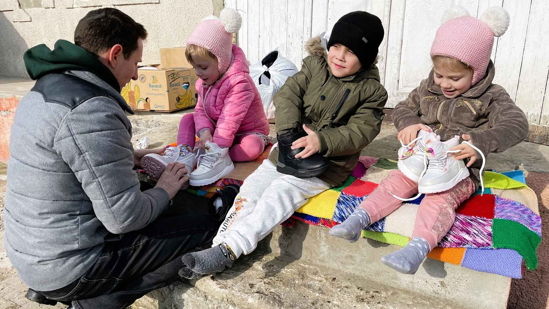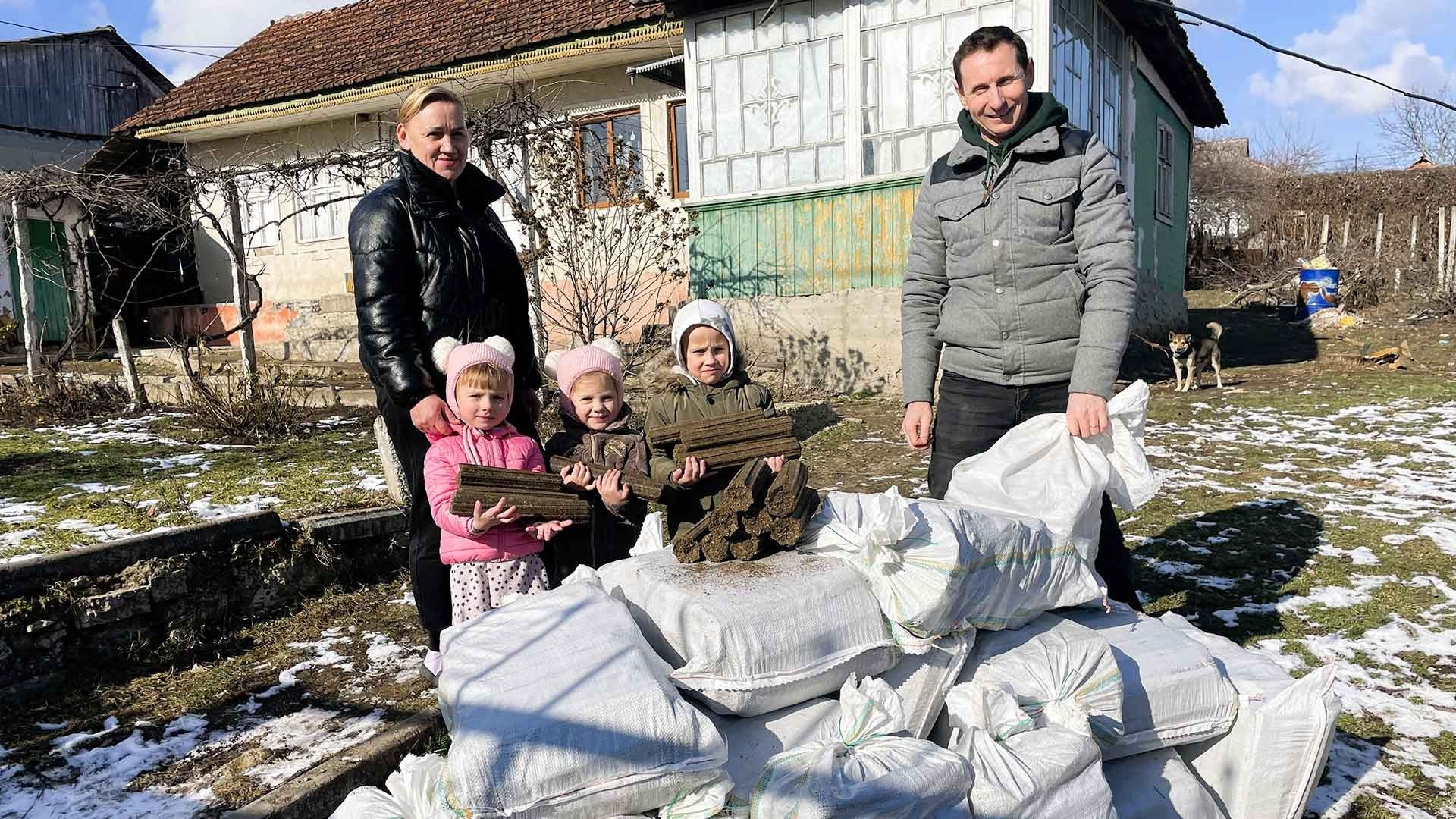 Everything changed when Oleg from Mission Without Borders arrived at their home. He brought warm winter clothing and shoes for each child – in their favourite colours – and 500kg of heating briquettes to help the family survive the winter.